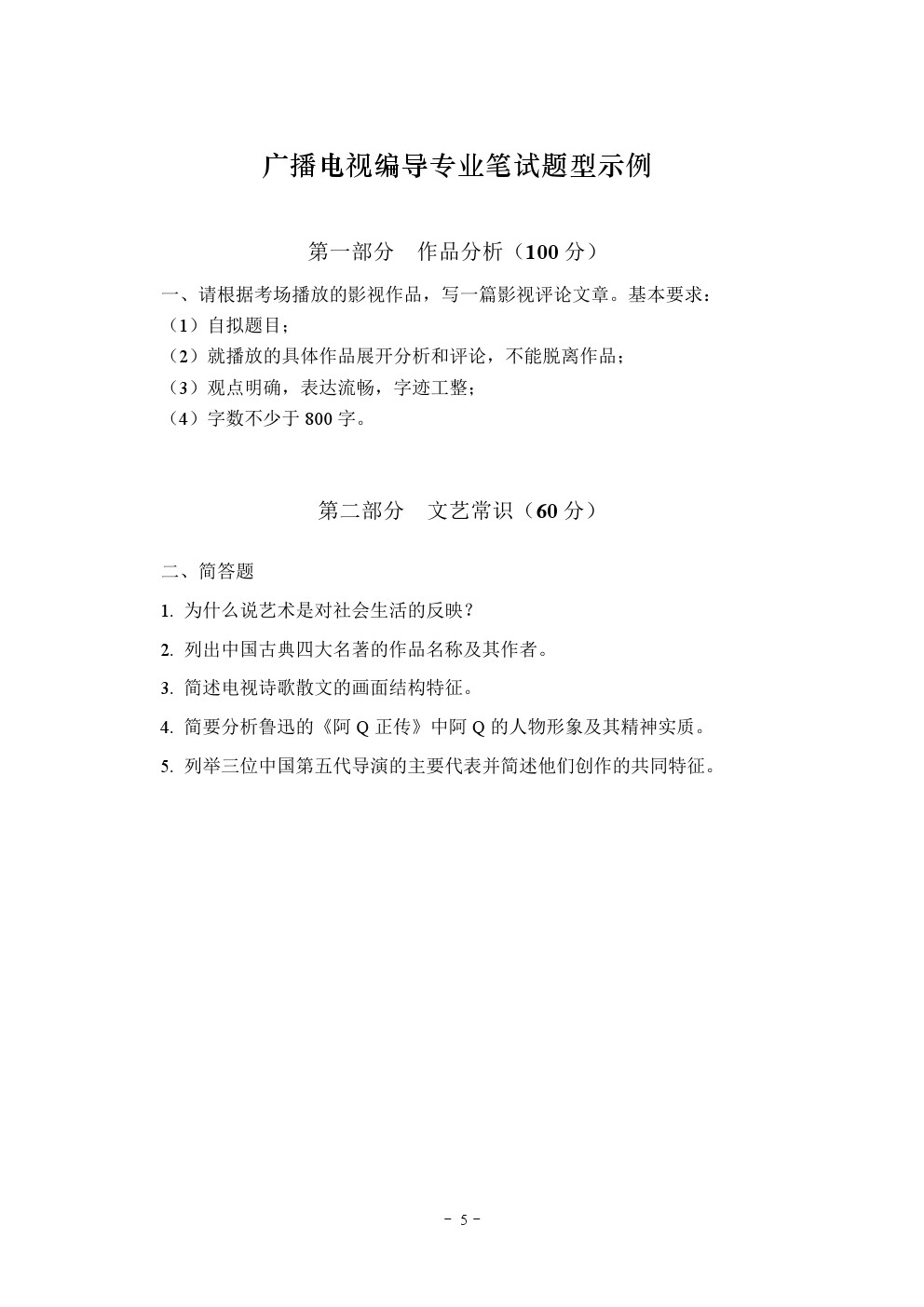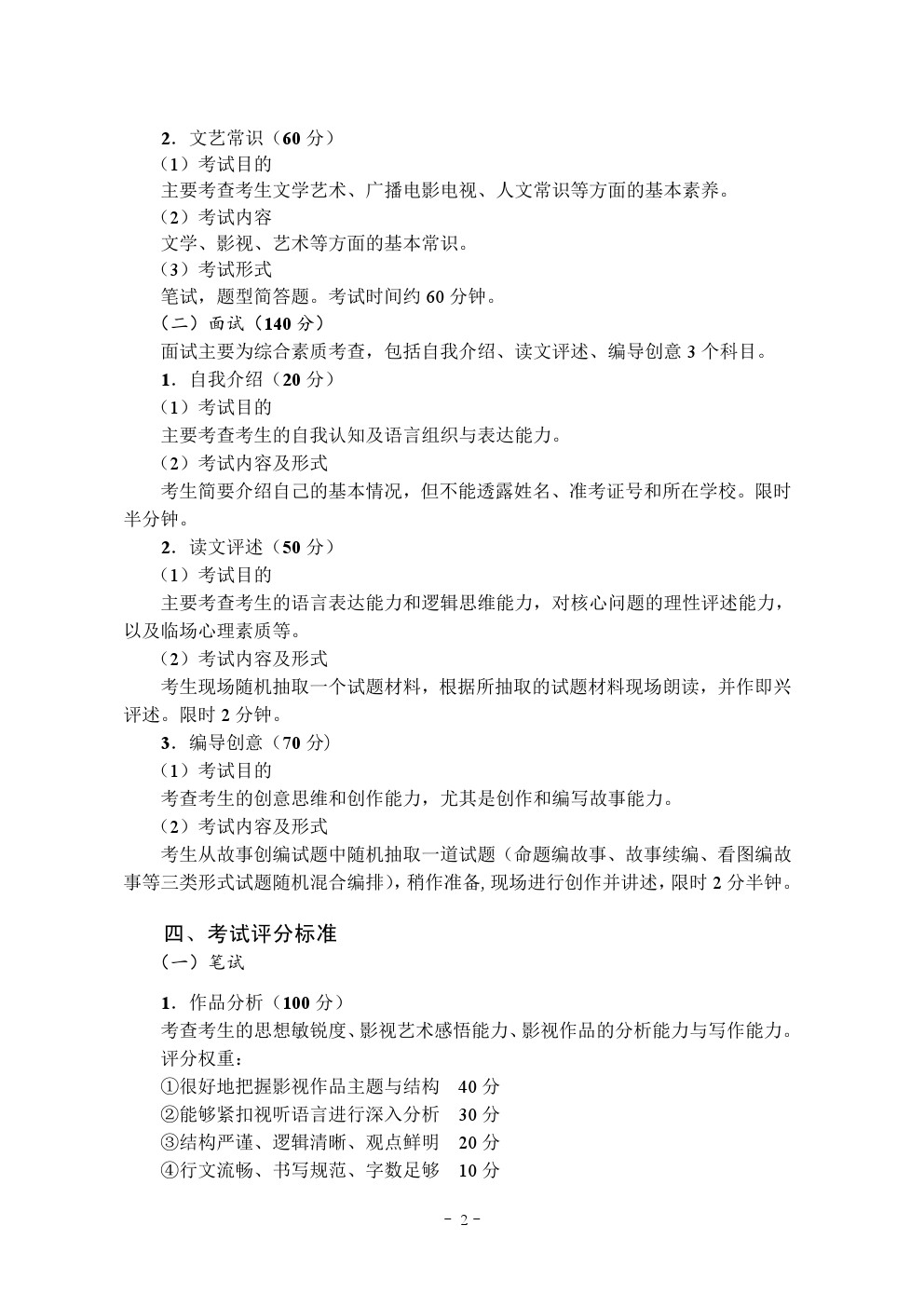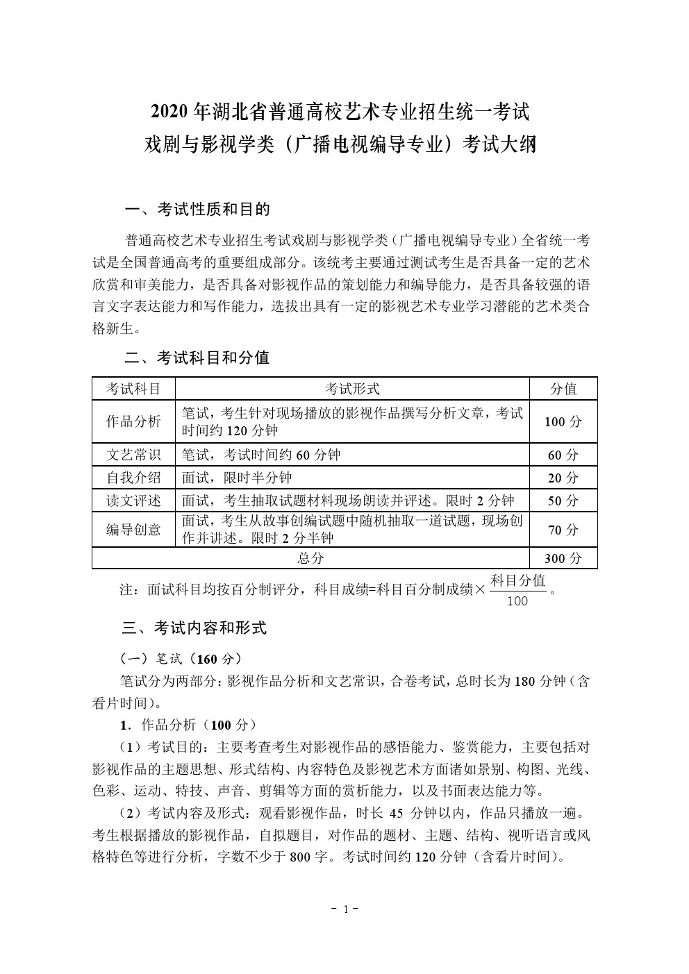 2020年湖北省艺术类统考(广播电视编导专业)考试大纲