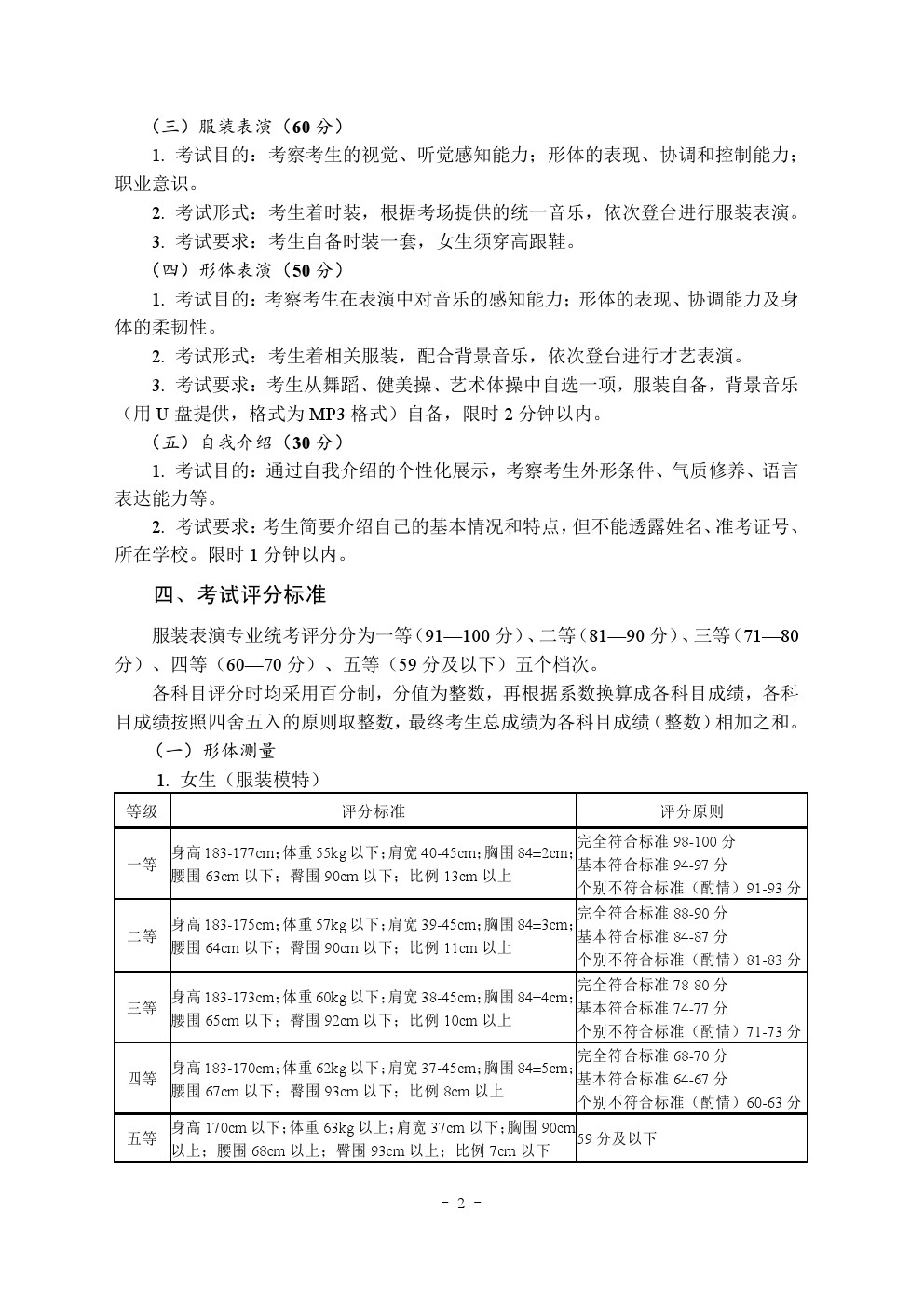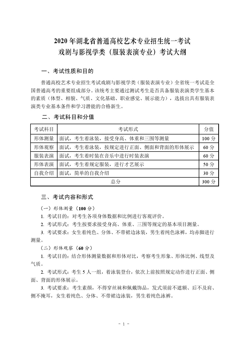 2020年湖北省艺术类统考(服装表演专业)考试大纲