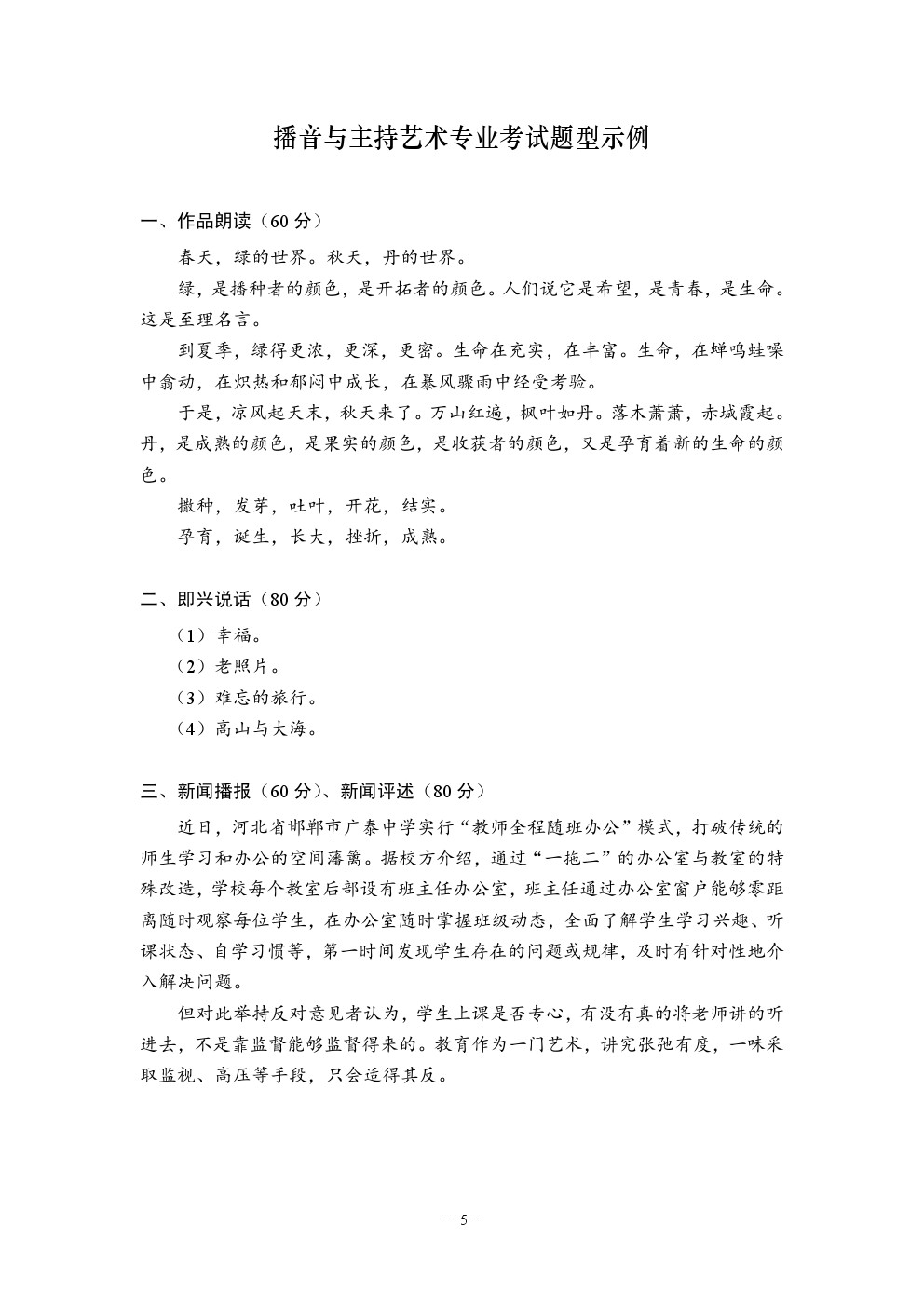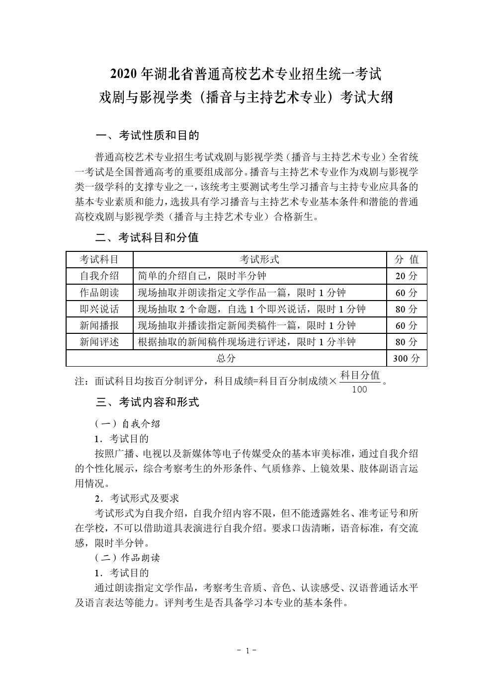 2020年湖北省艺术类统考(播音与主持艺术专业)考试大纲
