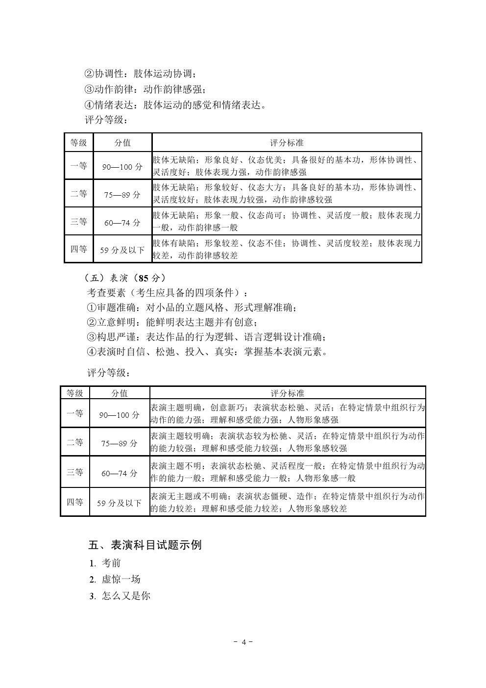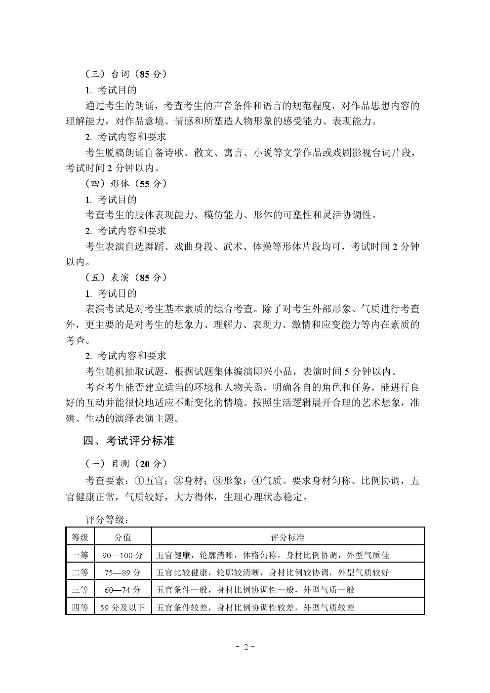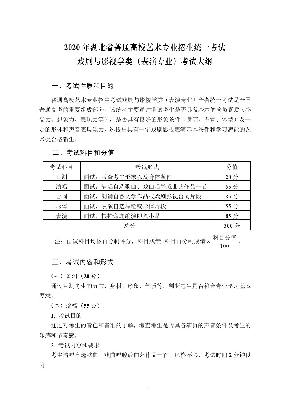 2020年湖北省艺术类统考(表演专业)考试大纲